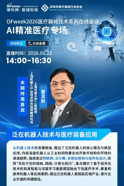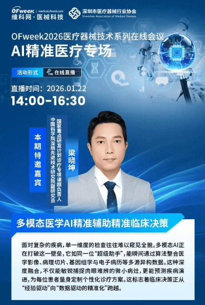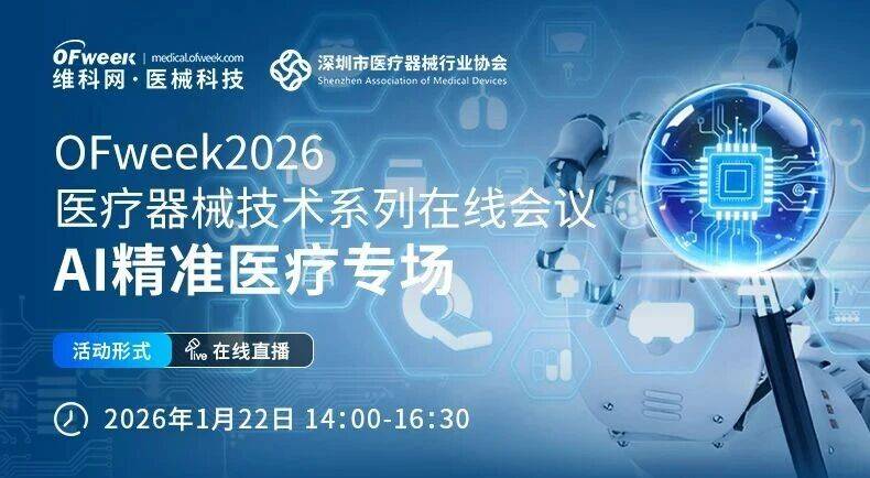 为了汇聚行业智慧、破解行业难题,由OFweek医械科技举办的 “OFweek2026医疗器械技术系列在线会议-AI精准医疗专场” 将于2026年1月22日14:00—16:30线上开播。